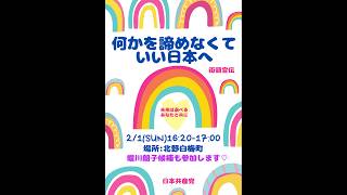 - 大河原としたか選挙区予定候補、大門みきし参院議員(比例代表)が決意表明