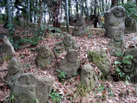 早春の一日、かねてから一度行きたかった伏見深草の石峰寺に足を運んだ。昨年、伊藤若沖の展覧会があり、その後若沖ゆかりの石仏が何者か(?)に倒され新聞でも話題になった寺だ。伊藤若沖は江戸時代中期の画家。晩年石峰寺庵に住み、描いたとのこと。