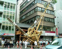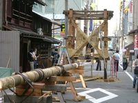 まず鉾建てです。京の街の雰囲気はここから祇園祭ムードに包まれていきます。今年は、鉾建ての作業から、その上に「真柱」を組み立てるところに注目しました。