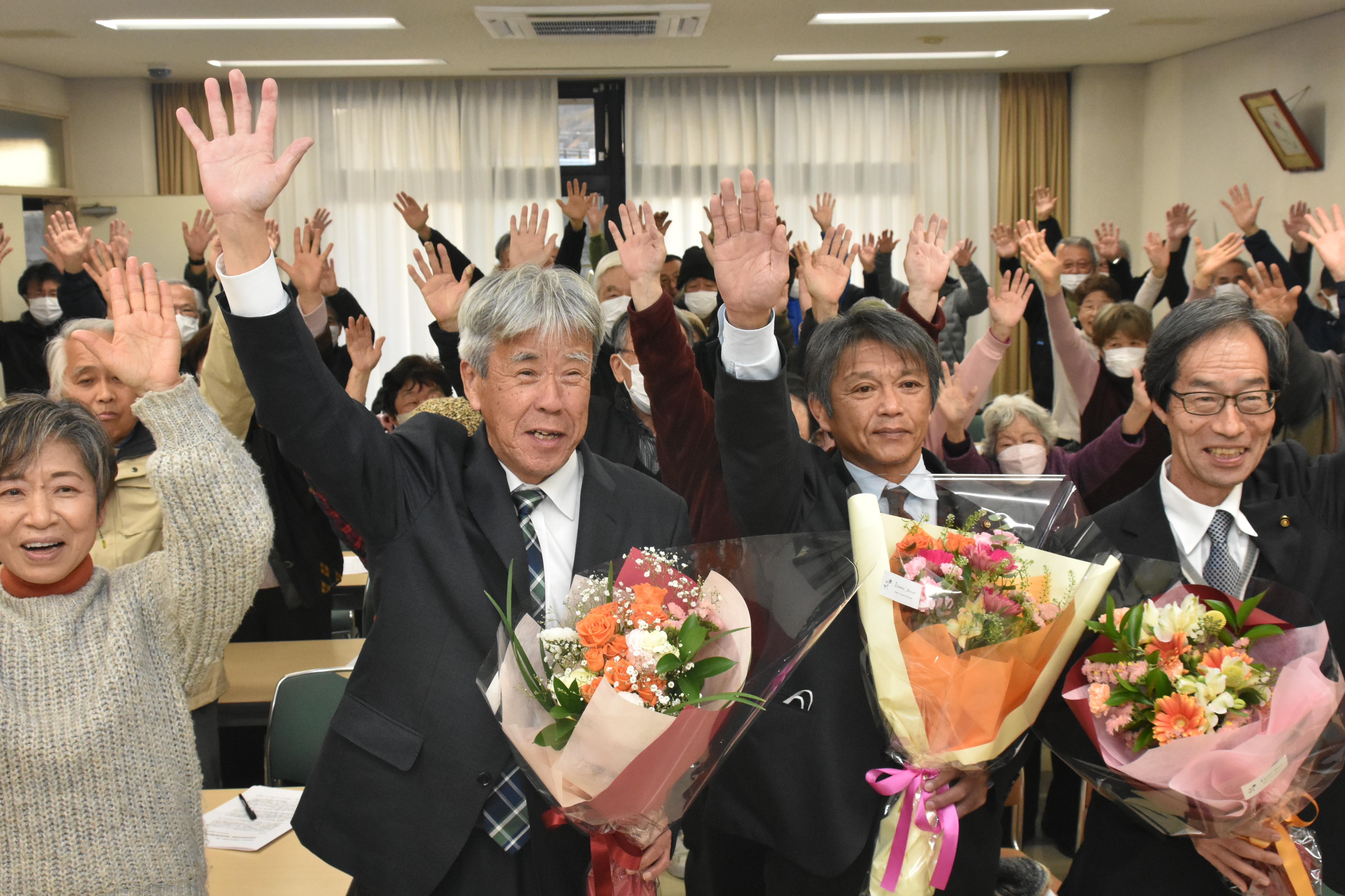 15日投開票された南丹市議選(定数20、 補2人)で、日本共産党は計2025票(得票率13・46%)を獲得し、河野啓介(62)、小林毅(72) 以上現=、佐々江和浩 (63) =新=の3氏全員が当選し、現有2から1増となる 3議席を獲得しました。