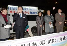 訴える(左2人目から)福山、倉林の両氏と野崎氏(右端)ら(19日、京都市) 市民と街頭演説」・デモ 「安保法制(戦争法)の廃止をめざす市民アクション@きょうと」がよびかける戦争法廃止を求める街頭演説とデモが19日、京 … 続きを読む 野党そろって共闘訴え 戦争法廃止を 19の日行動