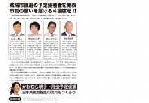 日本共産党洛南地区委員会は1日、来年4月の統一地方選・後半戦での城陽市議選(定数20)で、現職3人、新人1人の予定候補を発表しました。現有4議席をめざします。 河村明子市議は府議選(城陽市区・定数2)に立候補します。4氏 … 続きを読む 2019城陽市議選 予定候補4氏を発表
