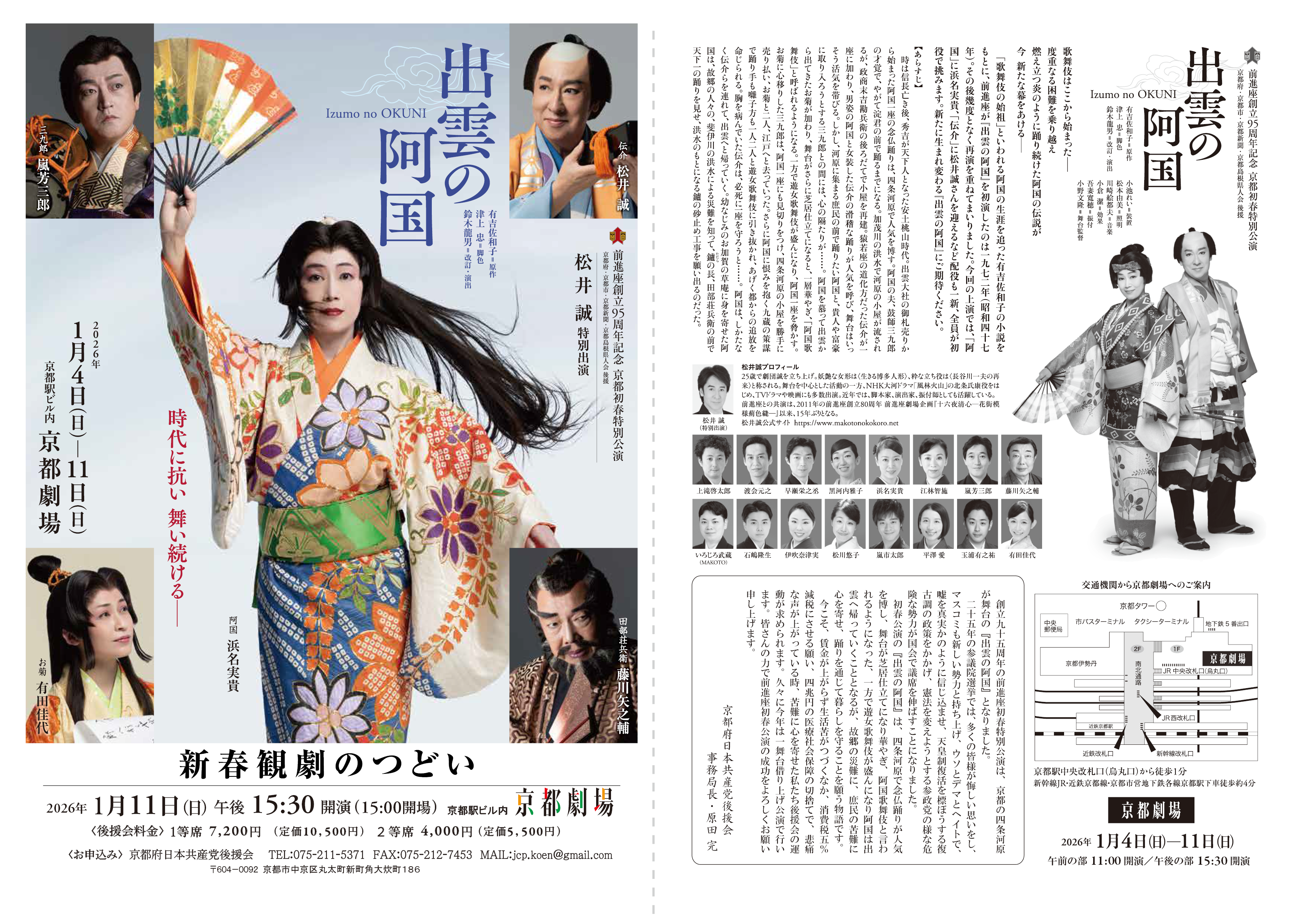 2025.11.15(土) 前進座・新春観劇のつどい 『出雲の阿国』 / 1月11日 📢京都府日本共産党後援会のお知らせ📢 毎年恒例の前進座「京都初春特別公演」 「歌舞伎の始祖」といわれる阿国の生涯をえがく『出雲の阿国』。 有吉佐和子の小説をもとに1972年の初演。再演を重 ..
