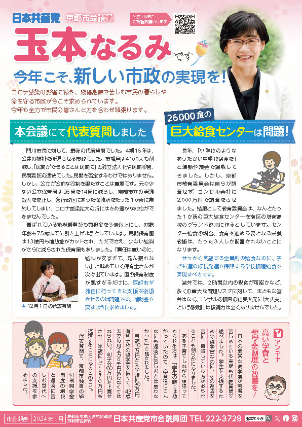 市議7期、63歳。保健師、看護師。京大医療技術短期大学部看護学科、 京都府立保健婦専門学校卒業。京都民医連北病院、待鳳診療所、葵会訪問看護ステーション所長、葵会京都市在宅介護支援センター所長など歴任。