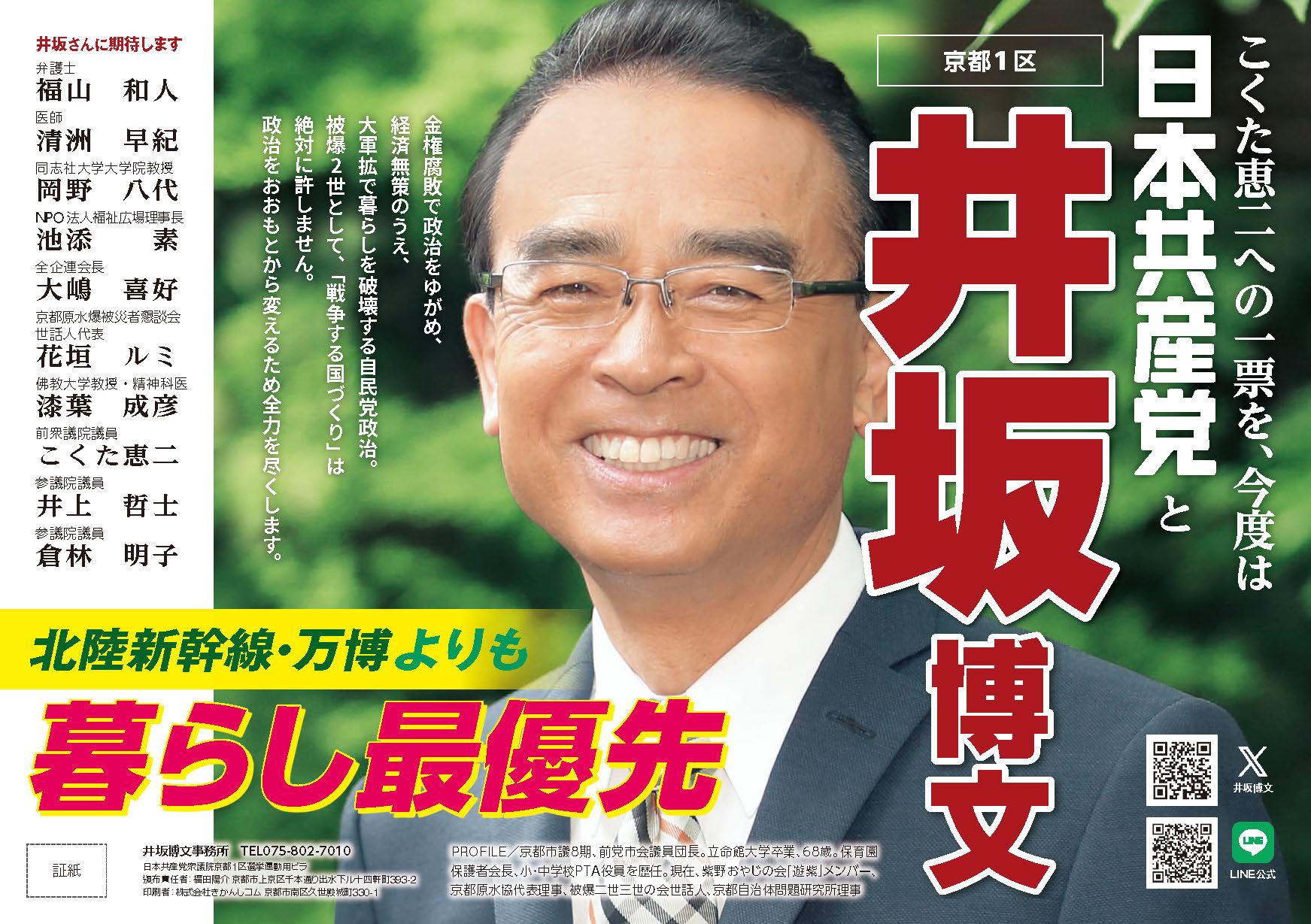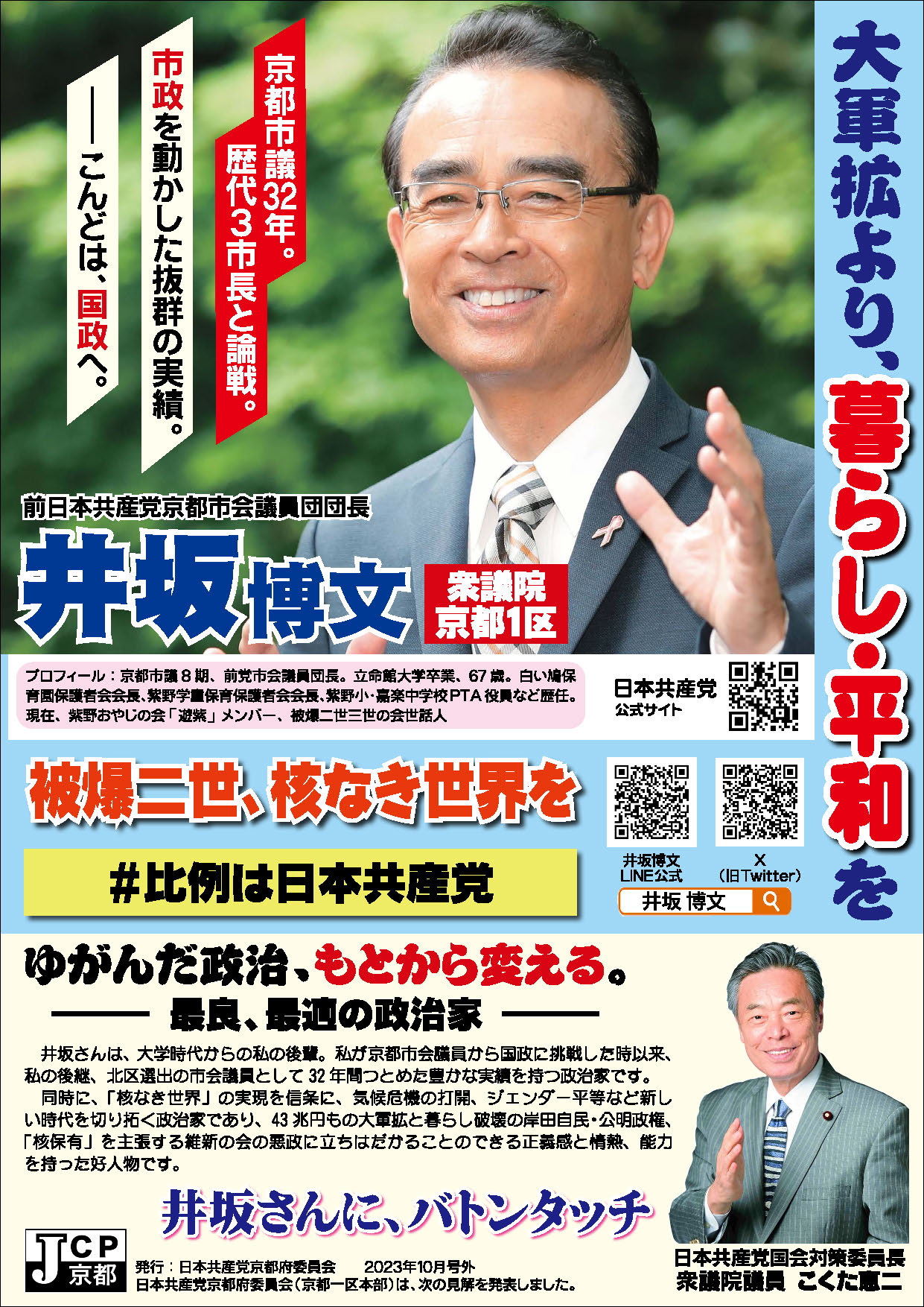 前京都市会議員(1期)。立命館大学経営学部卒業。京都総評副議長、京都生協労働組合委員長、全国一般京都地方本部委員長など歴任。2019年4月の京都市会議員選挙(下京区)で初当選。