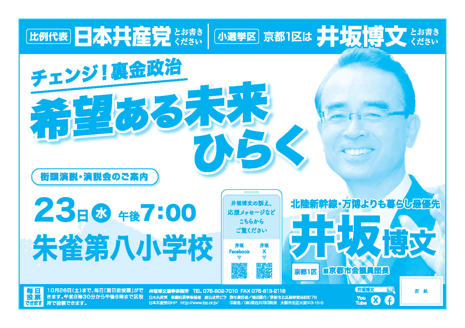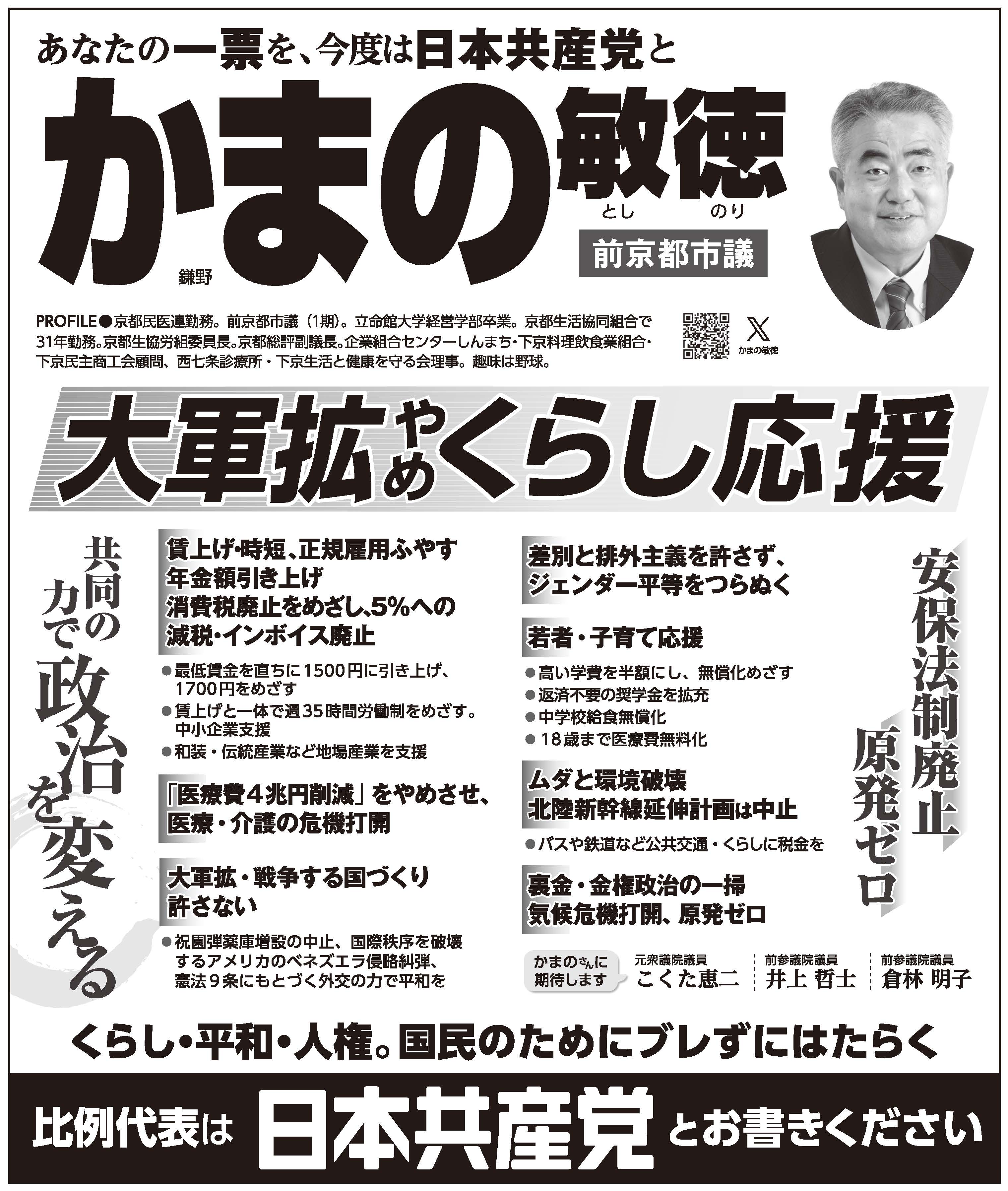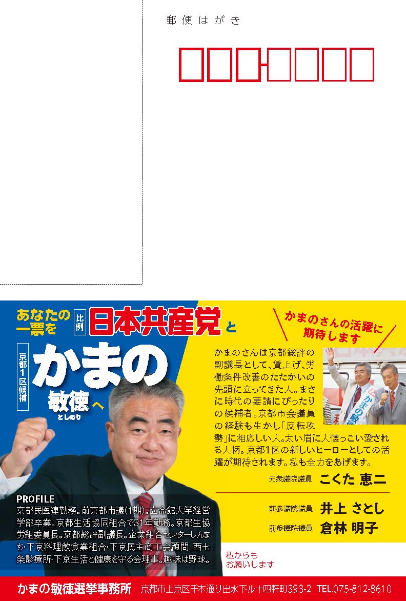 【衆院・京都1区】=北区、上京区、中京区、下京区、南区