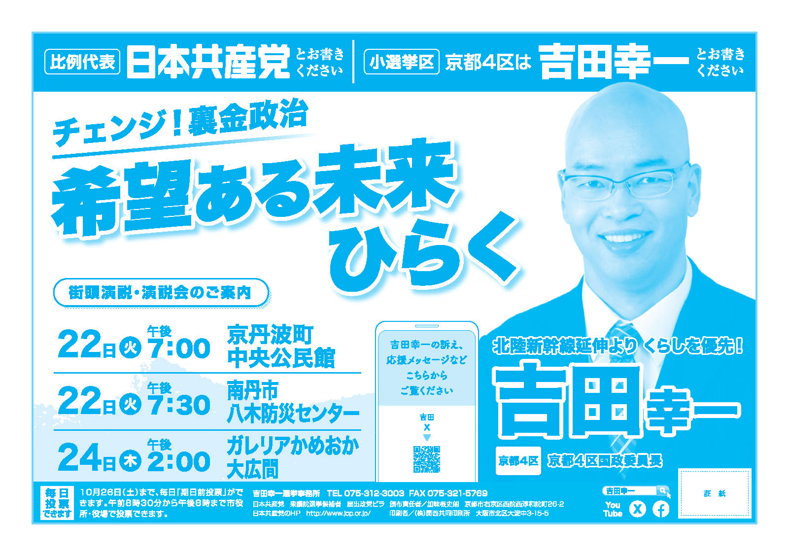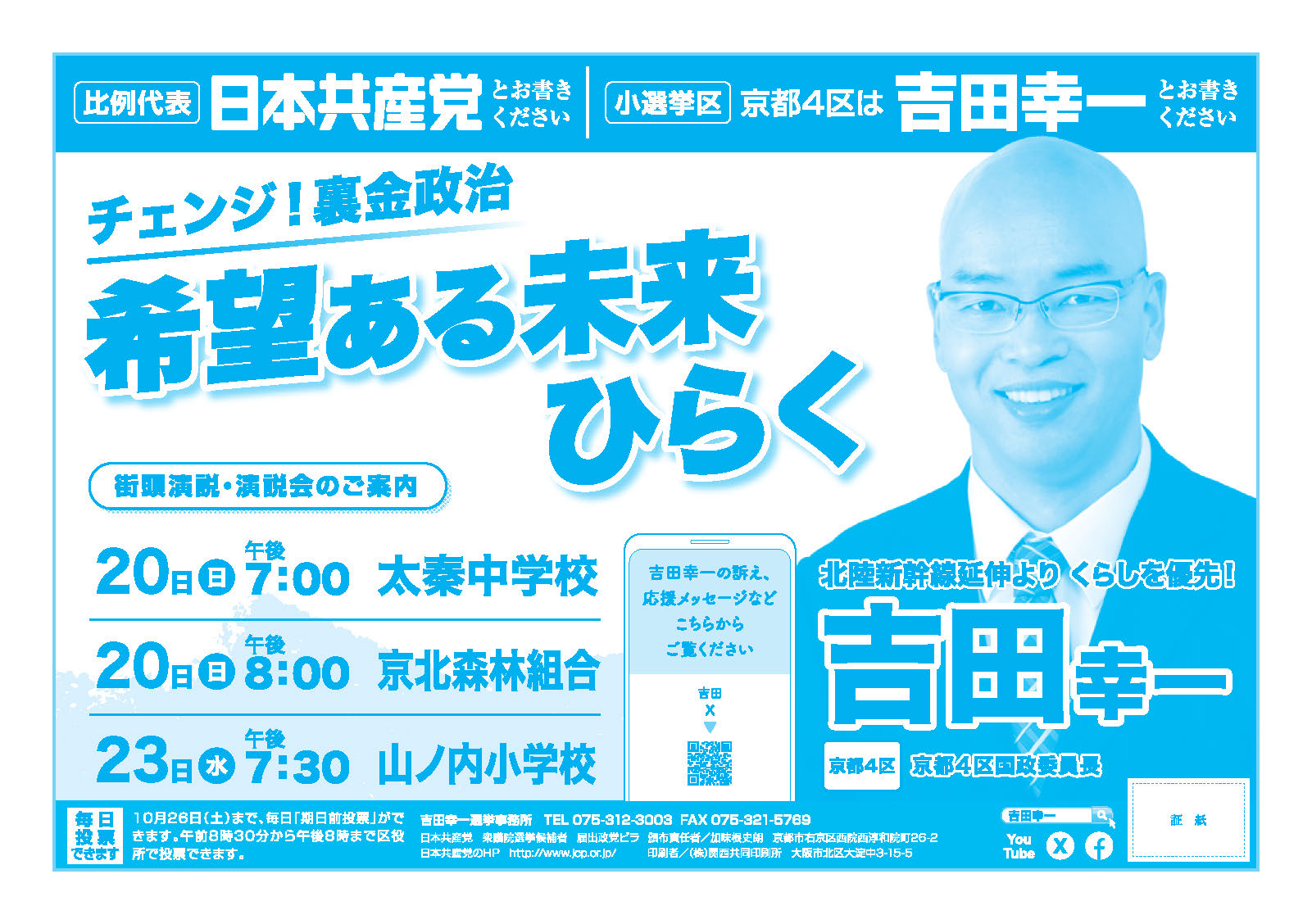 【衆院・京都4区】右京区、西京区、亀岡市、南丹市、京丹波町