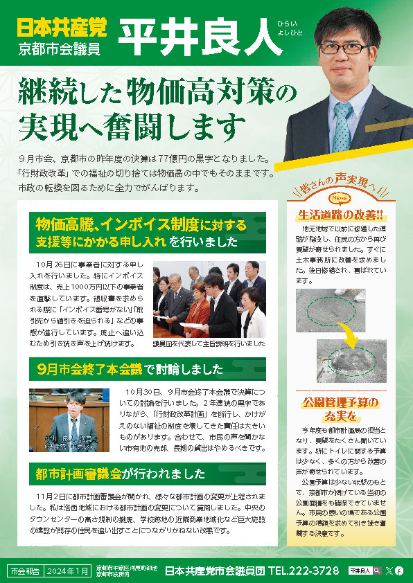 朱二小休日卓球クラブ指導者。朱二青空会まち美化部代表。元朱二小学校PTA会長。新婦人中京支部支部委員。