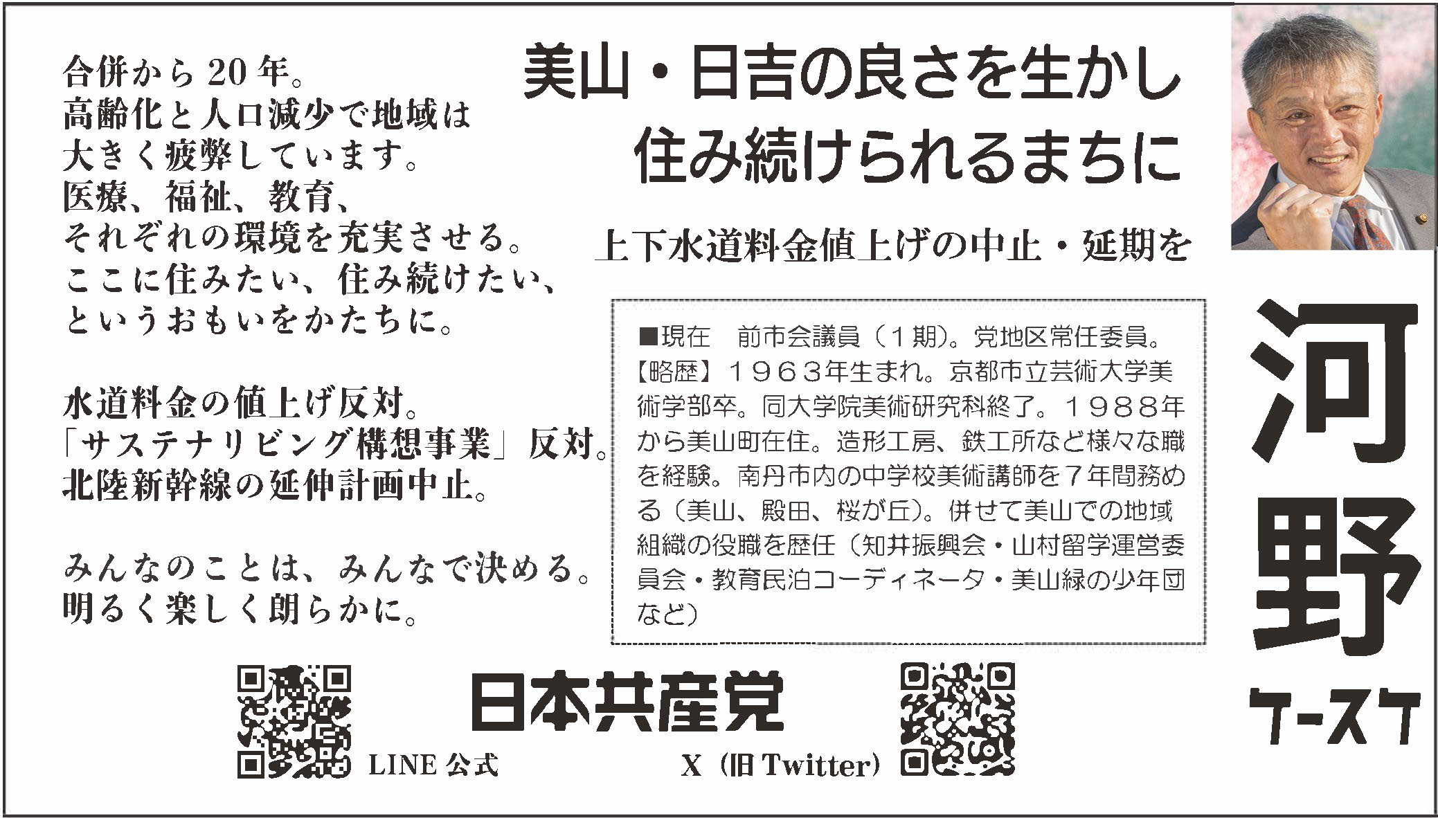 前市議会議員(1期)。党地区常任委員。
