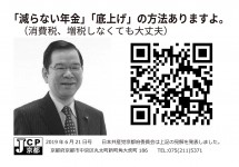 列島騒然の年金問題。 日本共産党の「減らない年金」「底上げ」提案を紹介する特設サイトへの誘導チラシです。 名刺大で気軽に渡せるグッズ。ダウンロード(A4版・8枚シート)し、印刷・裁断してご活用ください。