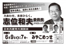 5月から6月にかけて、京都府全域で日本共産党の大演説会を開きます。 ぜひ、もよりの演説会にご参加下さい。 2016年6月9日(木)午後7時 みやこめっせ(京都市左京区) 2016年5月20日(金)午後7時半 ガレリアかめ … 続きを読む 力あわせ、未来ひらく。日本共産党大演説会のお知らせ