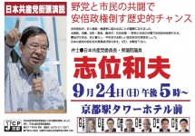 9月24日(日)午後5時 京都駅タワーホテル前 志位和夫委員長・衆院議員来る。 安倍首相が、近く解散・総選挙に踏み切ることが濃厚になりました。 野党と市民の共闘で、安倍政権を倒す歴史的チャンスです。 ぜひ、志位和夫委員長 … 続きを読む 9月24日(日)志位和夫委員長来る