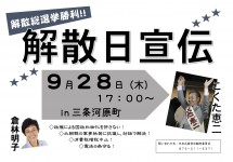解散総選挙勝利へ、9月28日(木)午後5時より、三条河原町にて解散日宣伝を行います。