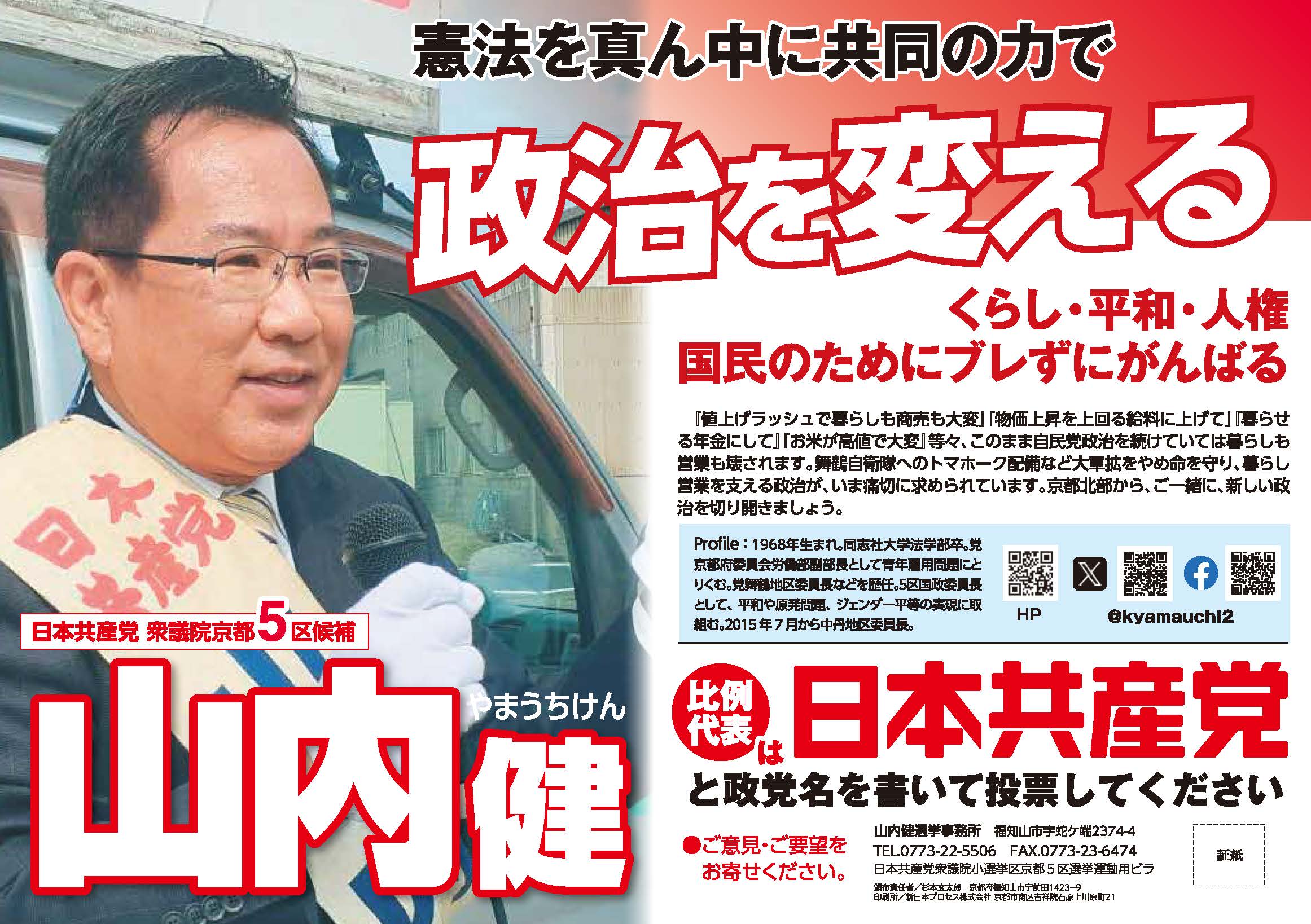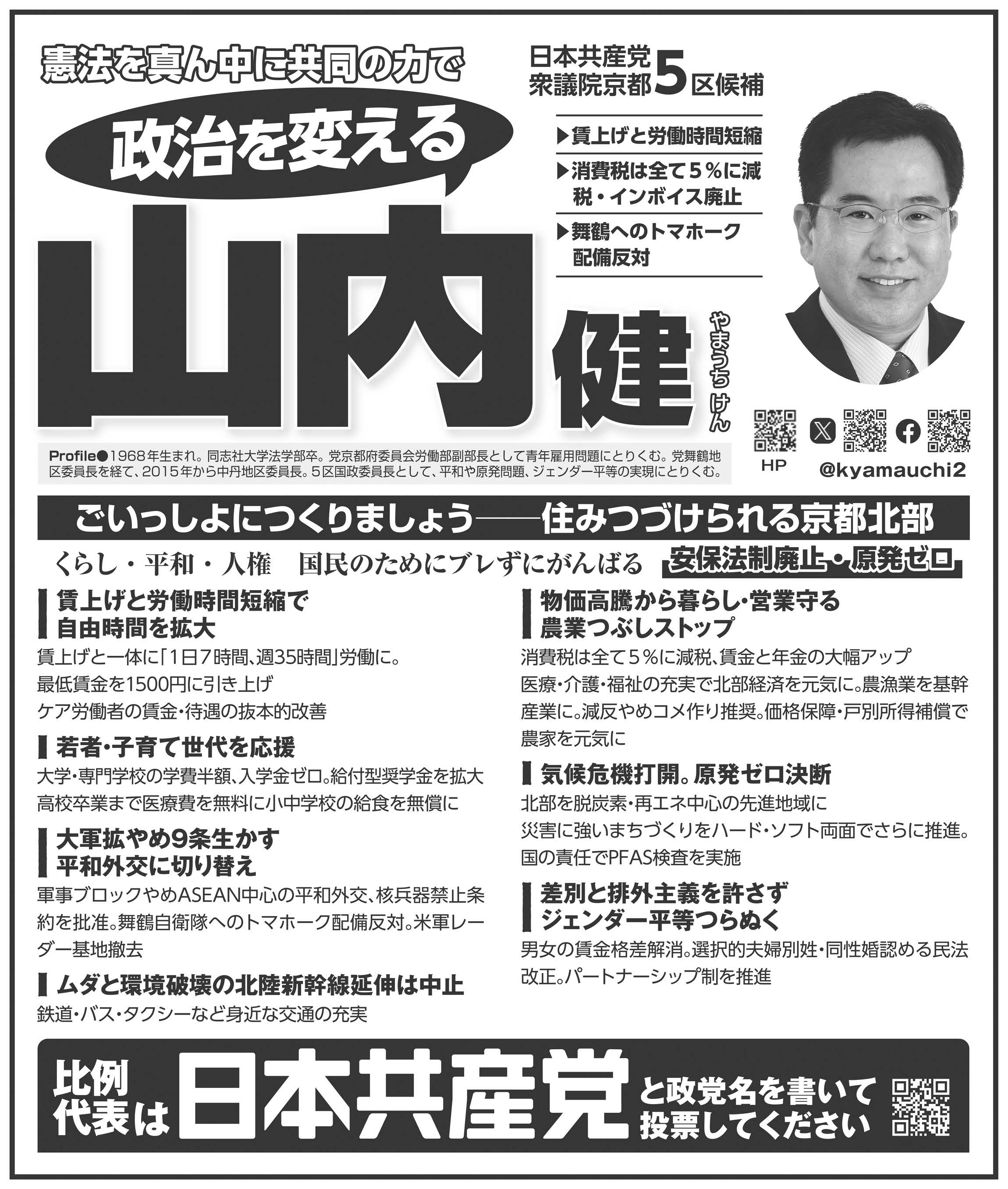 【衆院・京都5区】福知山市、舞鶴市、綾部市、宮津市、京丹後市、伊根町、与謝野町