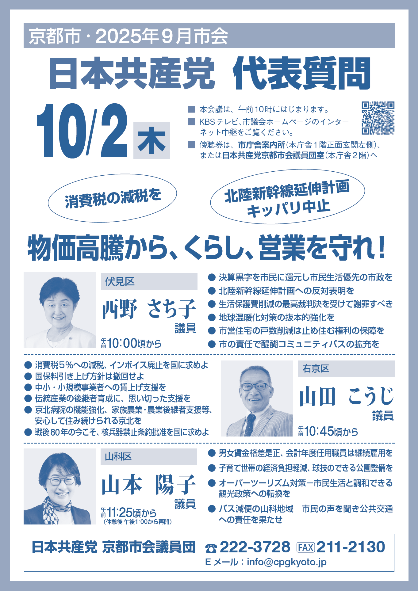 日本共産党京都市会議員団ホームページ:https://cpgkyoto.jp/ X(旧Twitter):@cpgkyoto