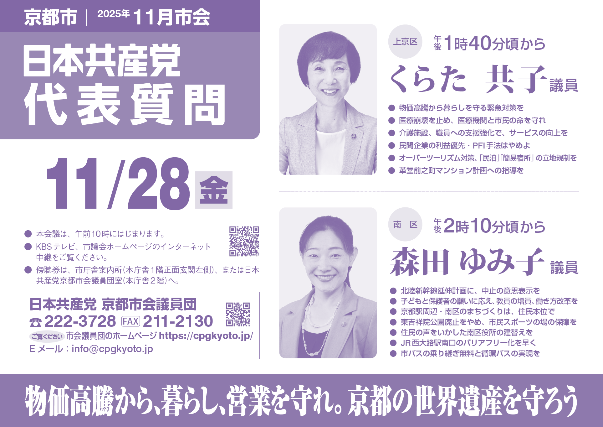 日本共産党京都市会議員団ホームページ:https://cpgkyoto.jp/ X(旧Twitter):@cpgkyoto