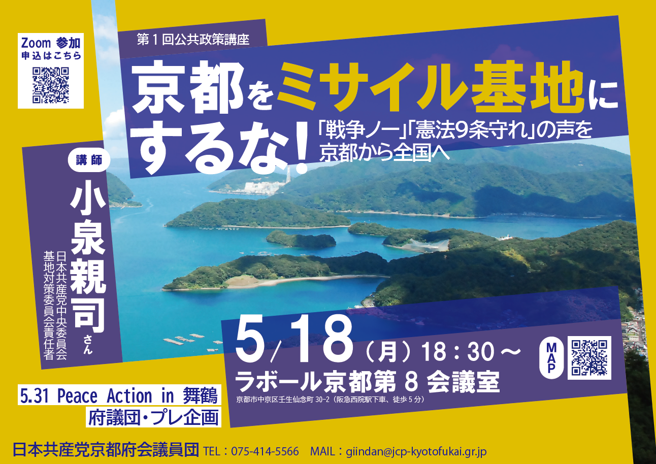 2026年度最初の公共政策講座は、5月31日(日)に行われるPeace Action in 舞鶴に呼応して、党議員団のプレ企画に位置付けて開催します。